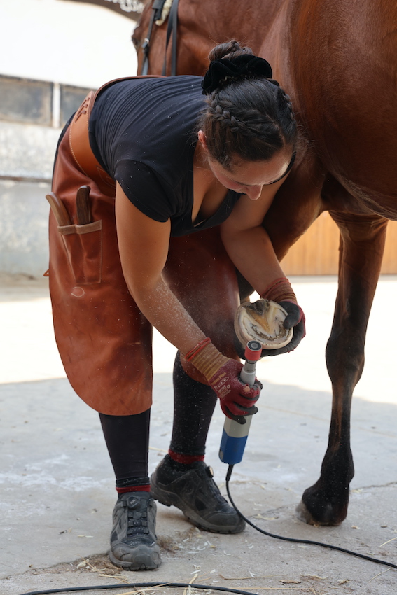 Mehr als die Hälfte meiner Kundenpferde waren bereits barhuf, aber kamen mit dem Schnitt bzw. der Art der Hufpflege nicht zurecht: etwa wegen zu hoher Trachten, drückender Eckstreben oder weil sich durch einen Stallwechsel der Boden verändert hatte und das Pferd mit seiner Hufsituation nicht mehr laufen konnte. Auch eine extreme Hufknorpelverknöcherung kann es notwendig machen, den Huf anders als bisher zu bearbeiten und eine andere Methode bzw. Herangehensweise der Barhufbearbeitung zu wählen.